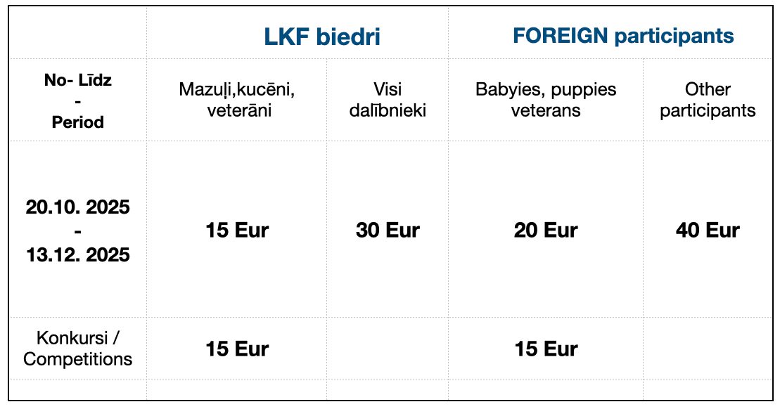 - kucēna šķirne, dzīvnieku audzētāju organizācijas (norāda LKF) un audzētavas nosaukums,